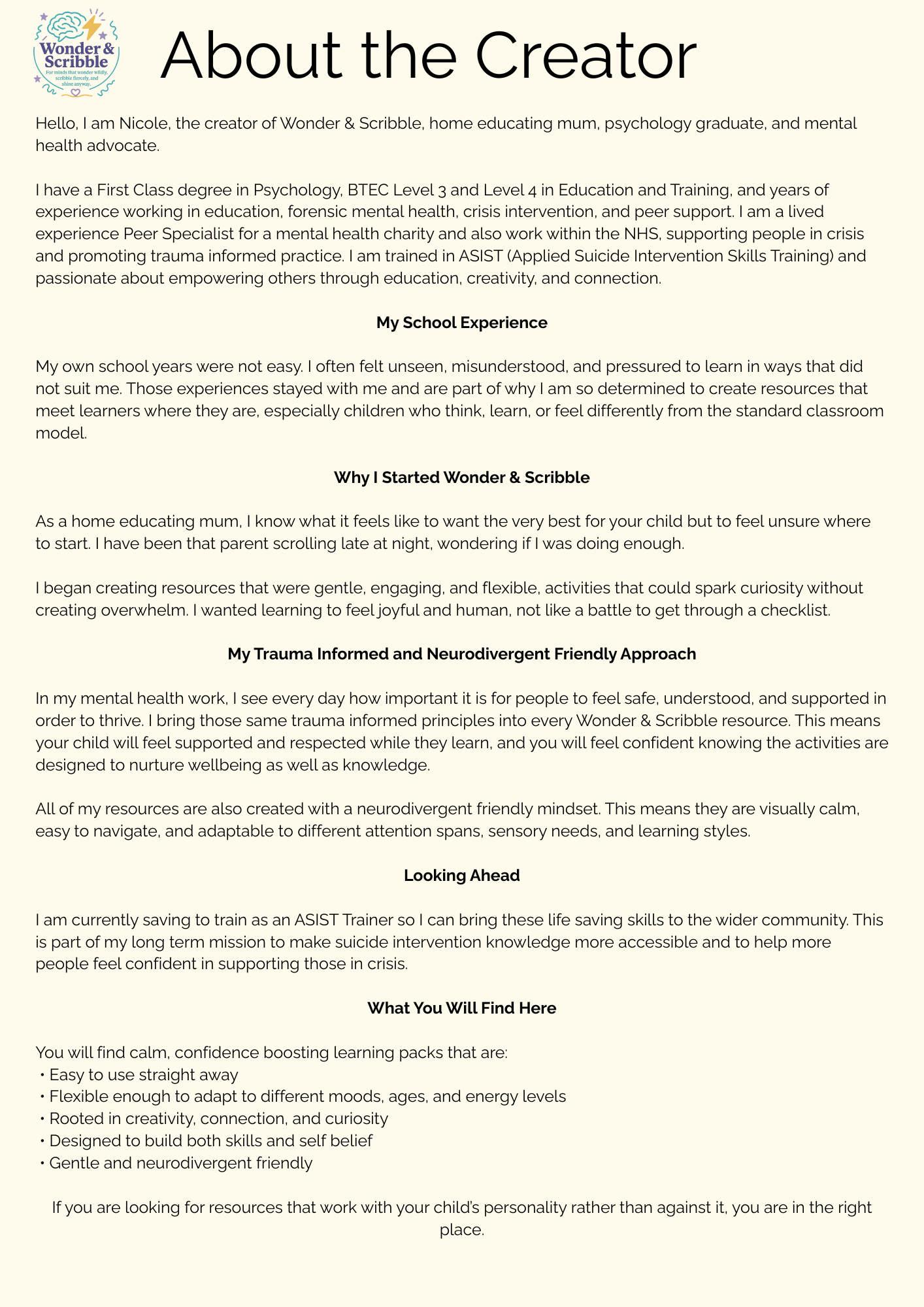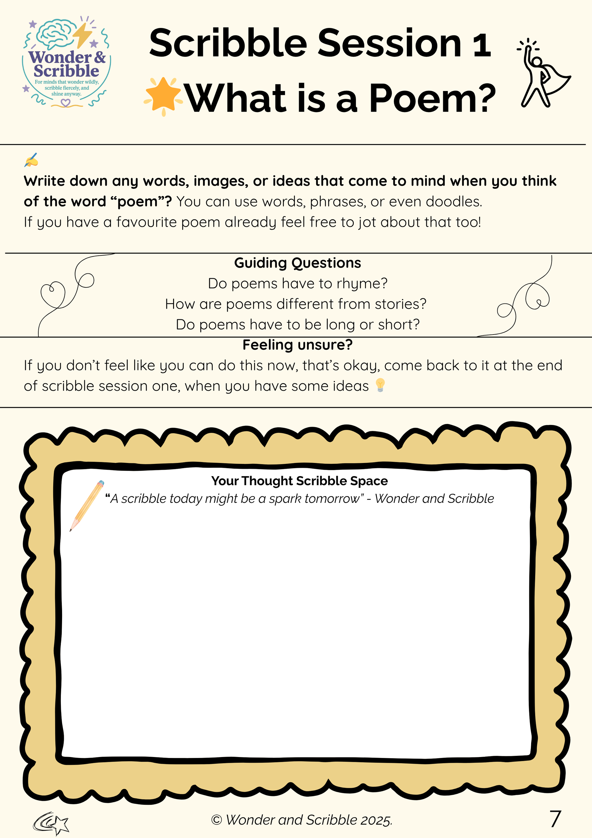 Created by Wonder & Scribble, for minds that wonder wildly, scribble fiercely, and shine anyway.